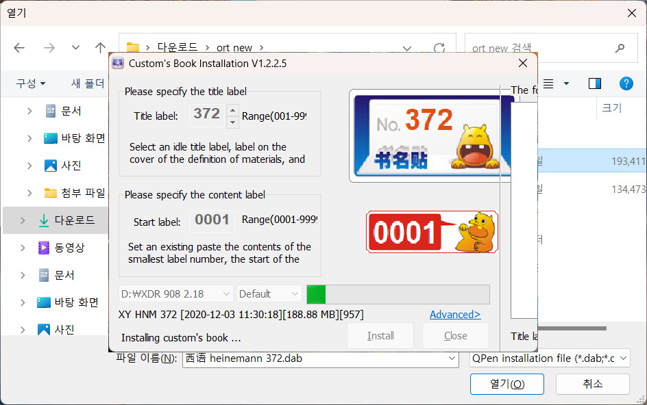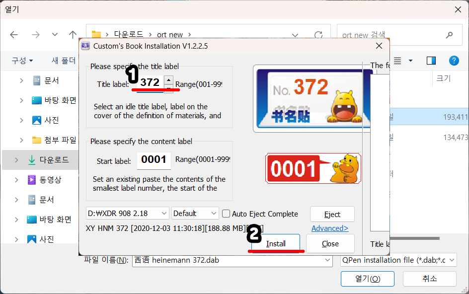 파일명에 있는 숫자와 동일한 숫자를 윗쪽에 입력하고 아래 Install 클릭